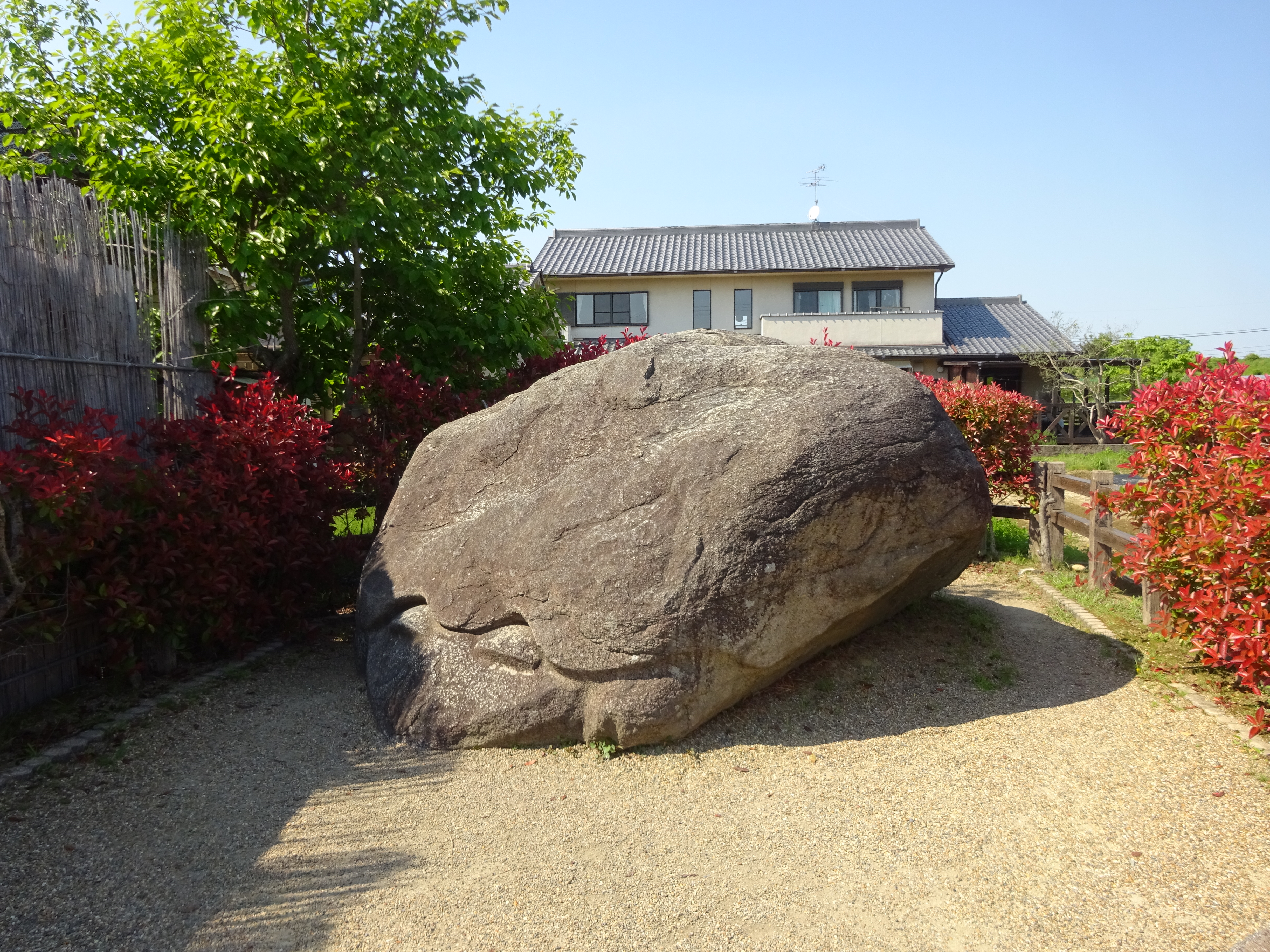 最後は、電動自転車を借りたレンタサイクル店横の石舞台古墳へ。バス通りから石舞台が見えるんだよ。